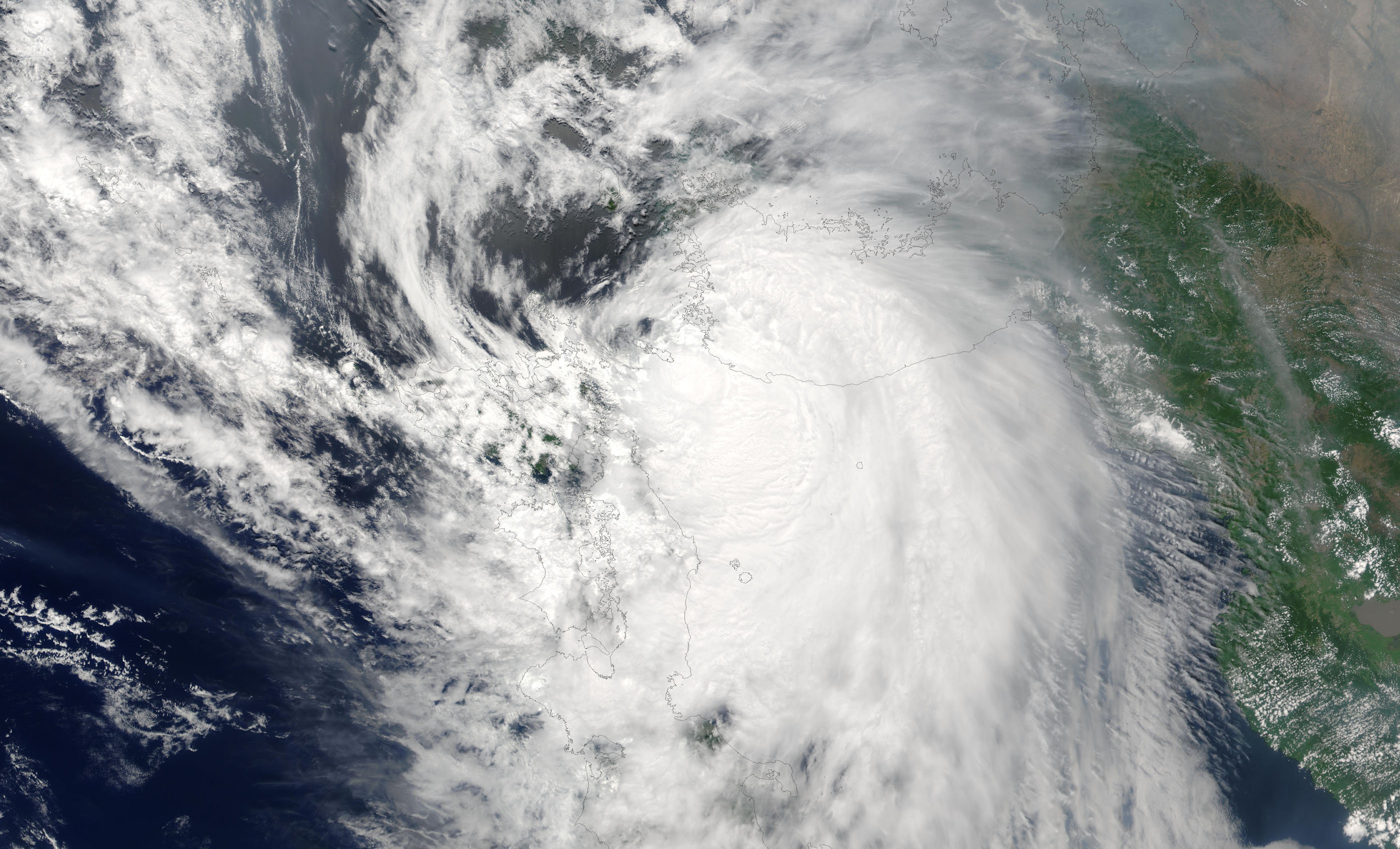 Typhoon Soudelor Between Korea and Japan On Thursday, June 19, 2003, the Moderate Resolution Imaging Spectroradiometer (MODIS) instrument onboard the Aqua spacecraft captured this true-color image of Typhoon Soudelor centered between Korea and Japan at the southern edge of the Sea of Japan.