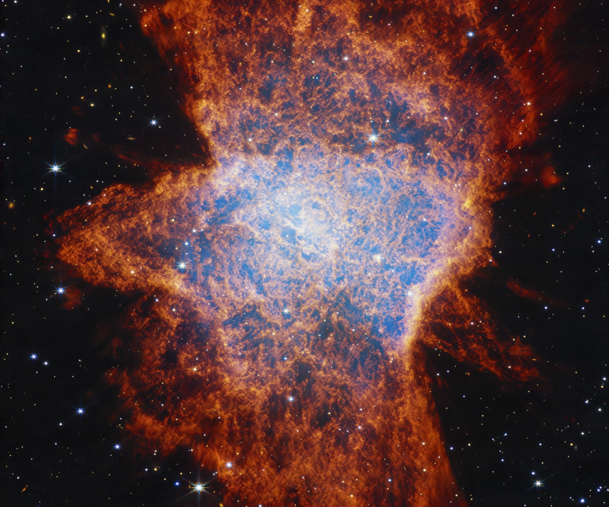 Astronomers believe that this companion is interacting with the main star’s ejecta, shaping the outflows and possibly compressing material into a disk that appears perpendicular to the lobes. Webb’s high-resolution data suggests this dynamic duo is responsible for NGC 6072’s odd shape.