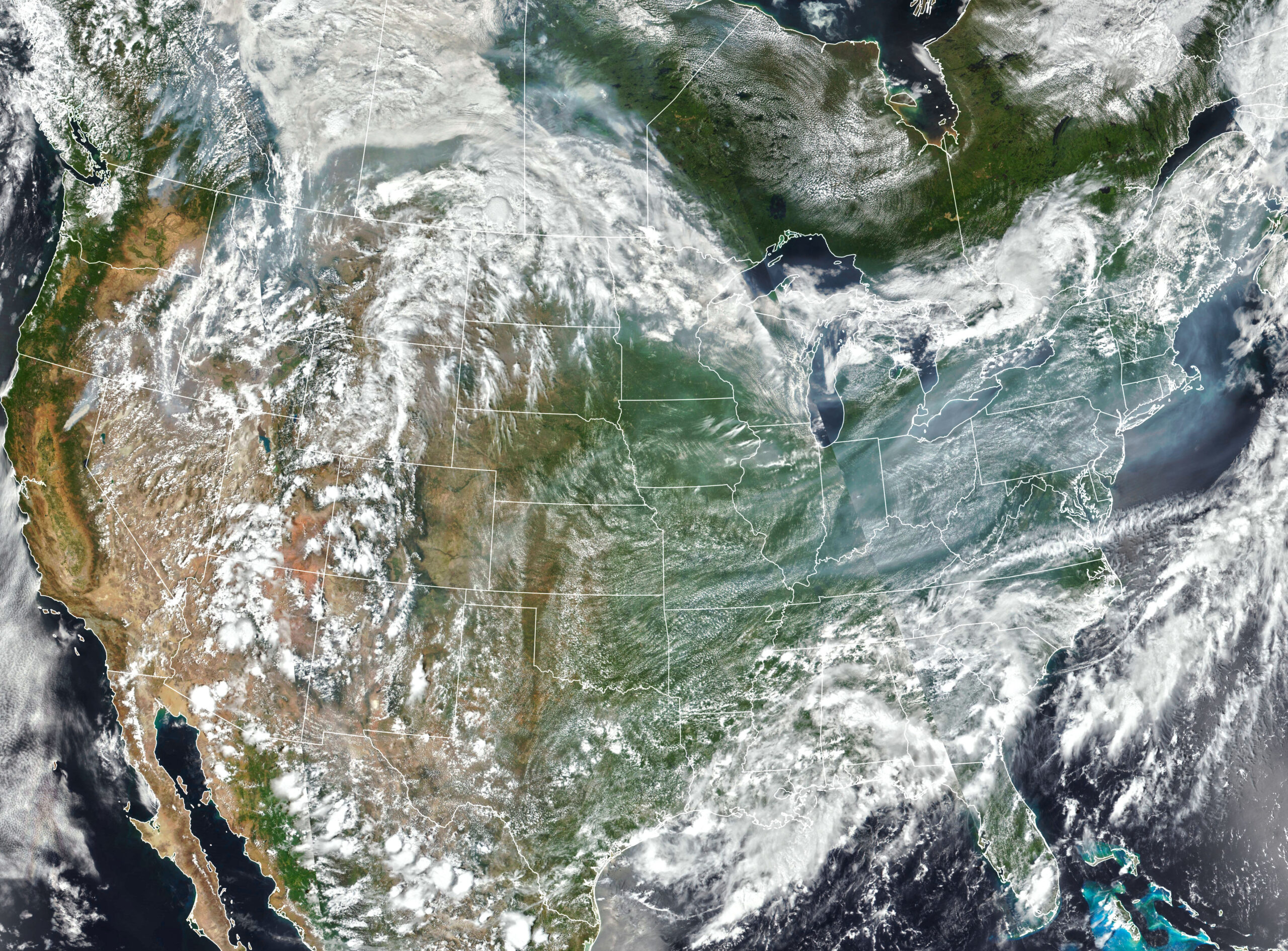 Wildfire smoke pours across the United States Today’s Image of the Day from NASA Earth Observatory shows wildfire smoke from western North America pouring into the eastern United States.