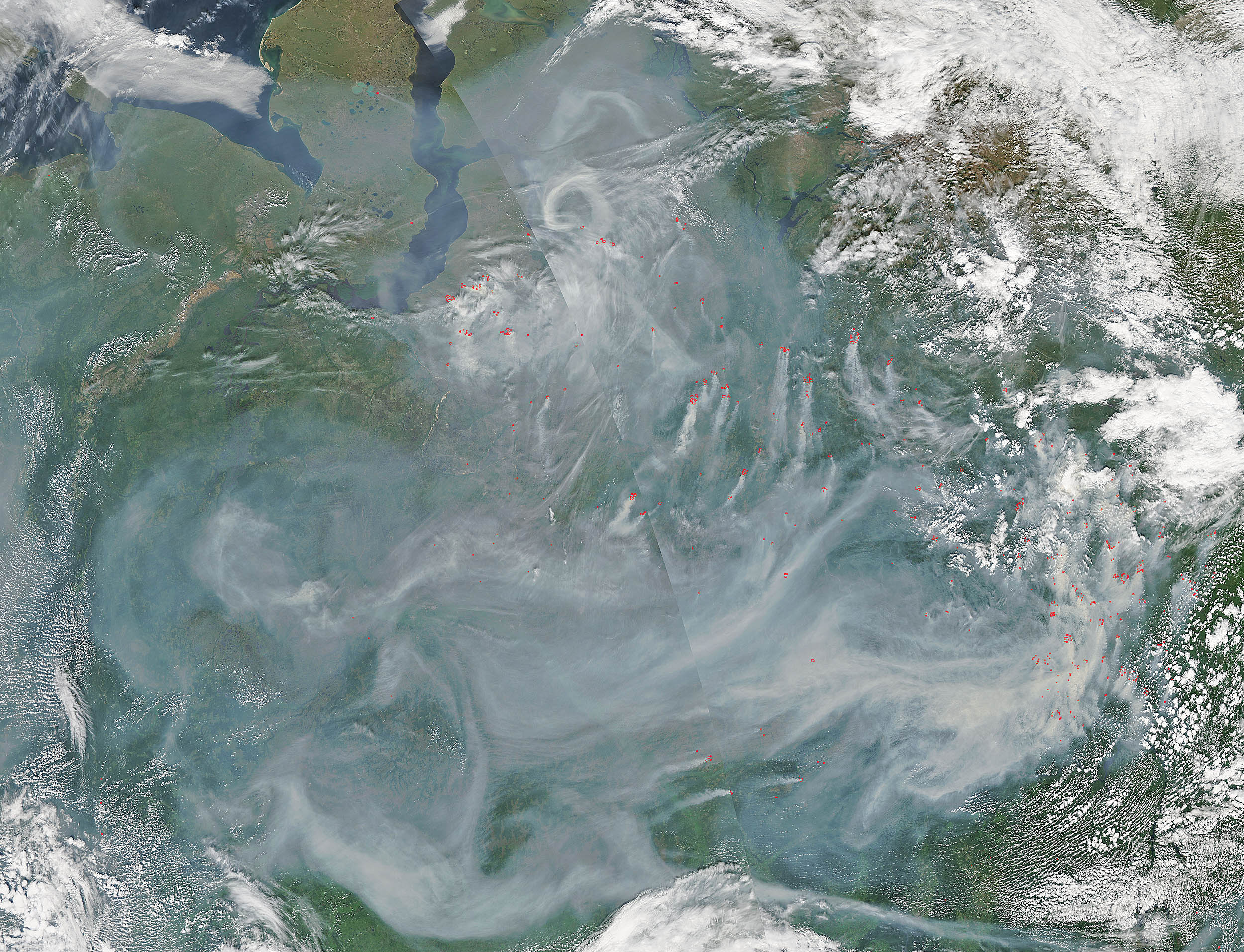 Wildfires and dense smoke in central Russia In mid-July 2016, satellites observed dense smoke over central Russia. Many of the fires appeared in the tundra-taiga interface, where boreal forest give way to low-lying vegetation and permafrost.