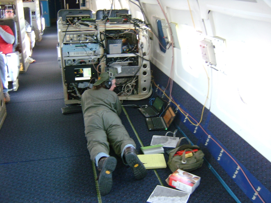 Dave Rabine, of NASA’s Land, Vegetation, and Ice Sensor (LVIS) instrument team, is busy at work during the high-altitude flight on March 29, 2010. Credit: NASA/Jim Yungel