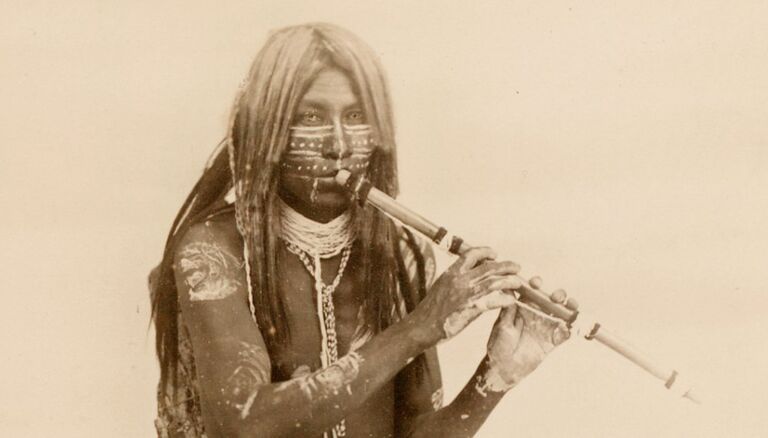 This Yuma man with his elaborate face paint holds a flute to his lips, and we only wish we could hear the tunes he played. The Yuma people were actually made up of several tribes, including the Maricopa, the Quechan, and the Mohave. You could find them in the vicinity of the Colorado River as well as the foothills of the Chocolate Mountains. For food, they typically cultivated crops such as beans and corn and hunted rabbits and antelope. Photo Credit: Isaiah West Taber/Buyenlarge/Getty Images