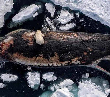 Photographer captures a polar bear devouring a sperm whale in the remote Arctic
