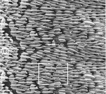 Ultra-magnified view of shark skin shows flexibility and resilience