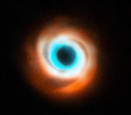 A swirl of gas and dust orbits a young star...