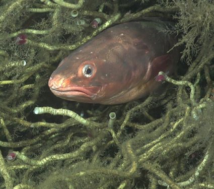 Tucked inside a bush of giant tubeworms 1,427 feet below...
