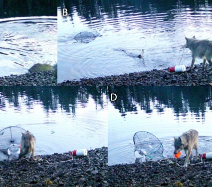 Wolves in the wild are caught on video seemingly using 'tools' to get food