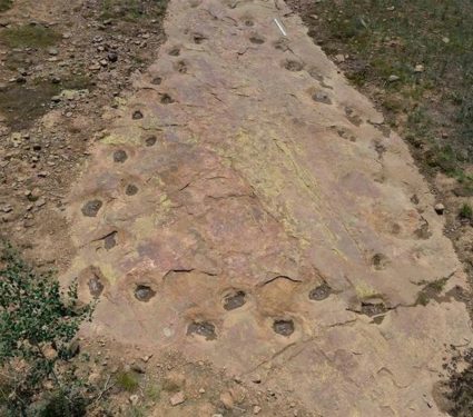 About 150 million years ago, a long-necked dinosaur walked across...