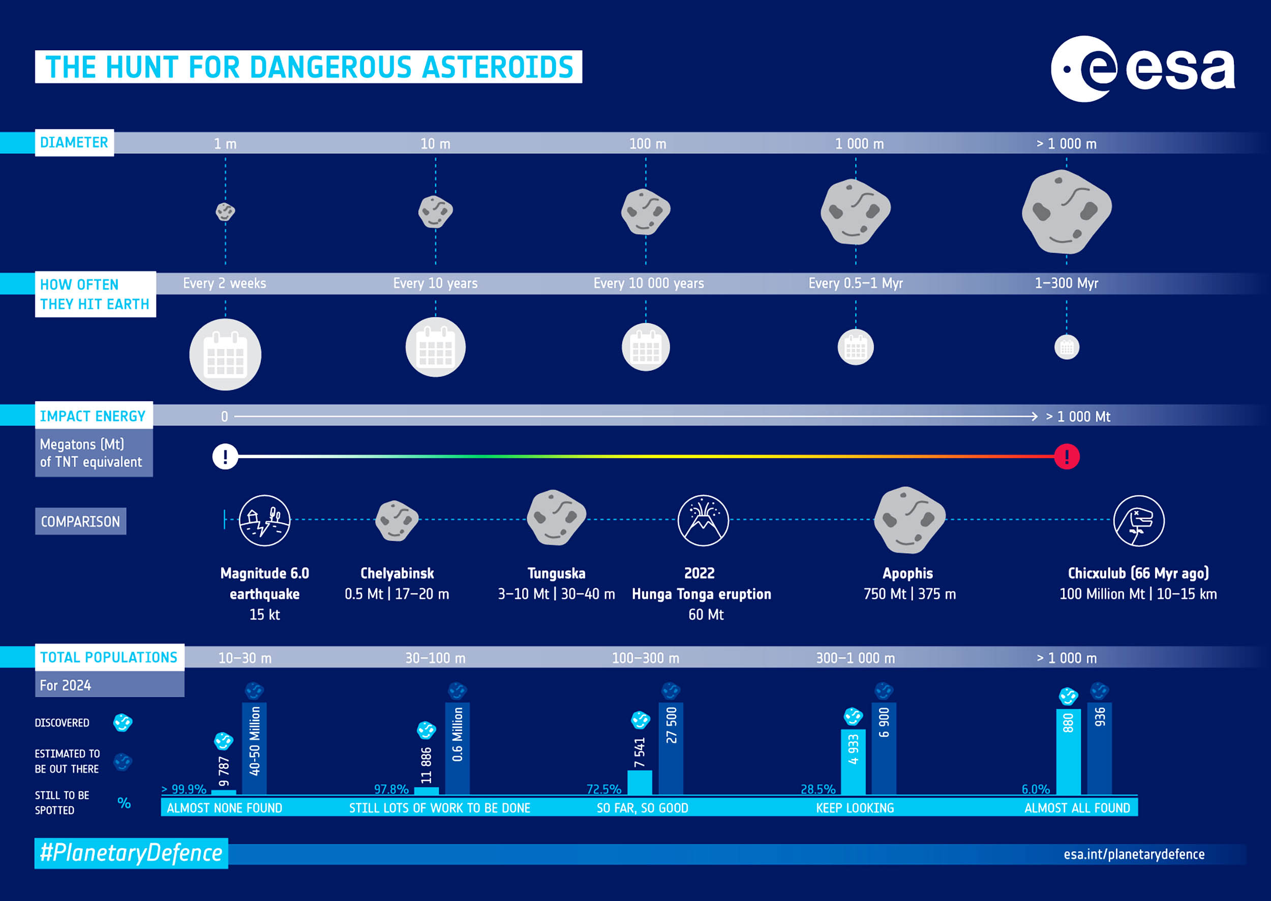 Today the main focus is on mid-sized asteroids between about 330 and 980 feet (100 and 300 meters) wide.