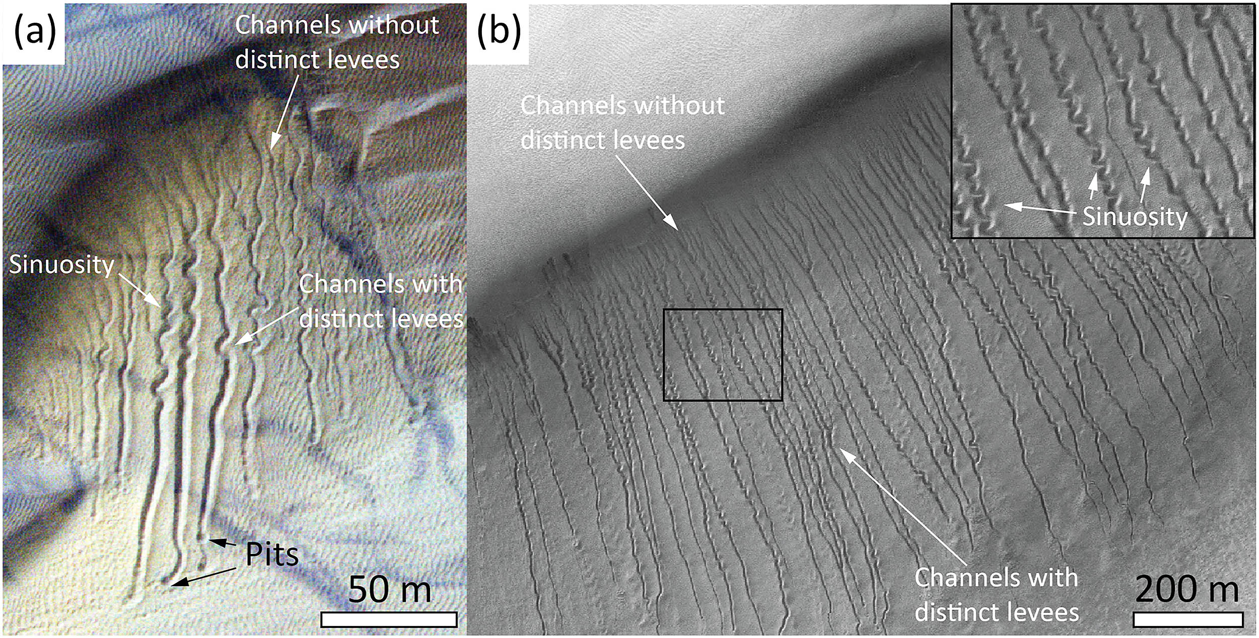 Across parts of the Red Planet, especially in its southern hemisphere, the slopes of sandy dunes are etched with deep, winding gullies.