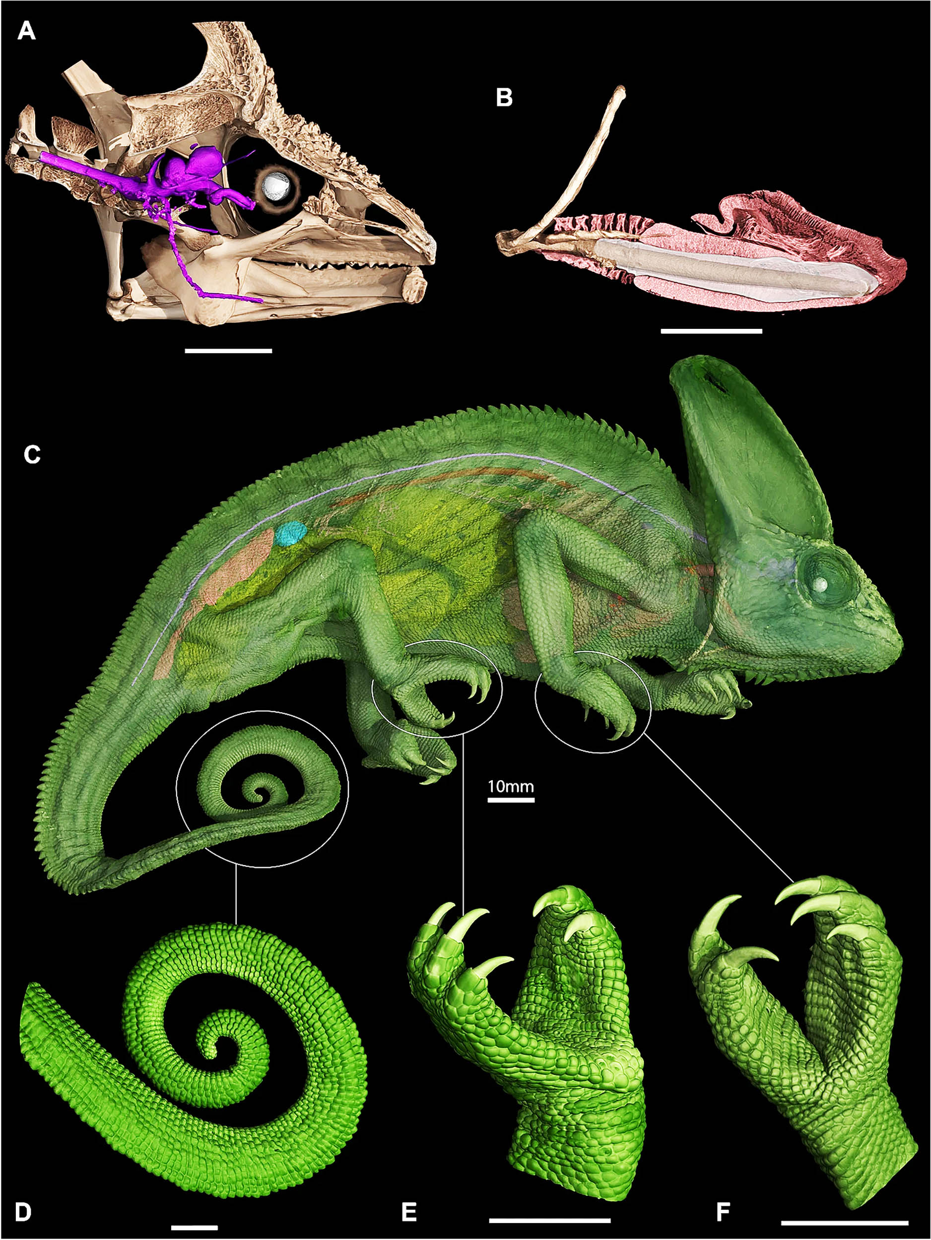 That unexpected find pushed the team to review older datasets and gather new scans from other lizards and snakes to see whether the coils were common or limited to chameleons.