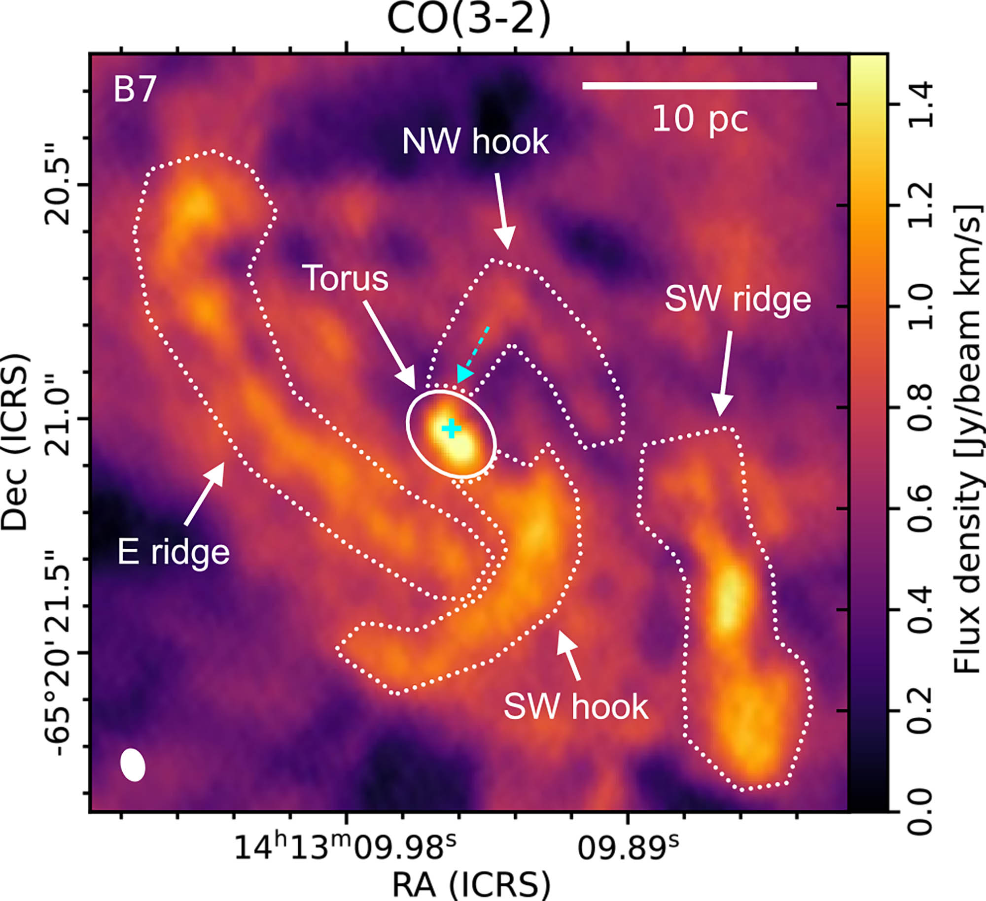 In a new study the team traced dust and dense gas and found two spiral arms that connect straight into the torus of the Circinus galaxy. Those arms are the missing supply lines.